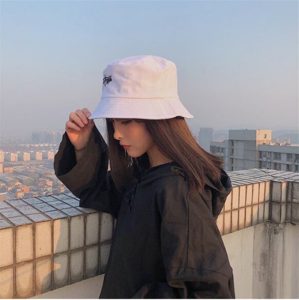 メンズ&レディース☆韓国/ストリート/リバーシブル/バケットハット/英字ホワイト